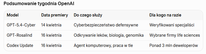 • GPT-Rosalind – pierwszy model OpenAI dedykowany naukom life sciences,